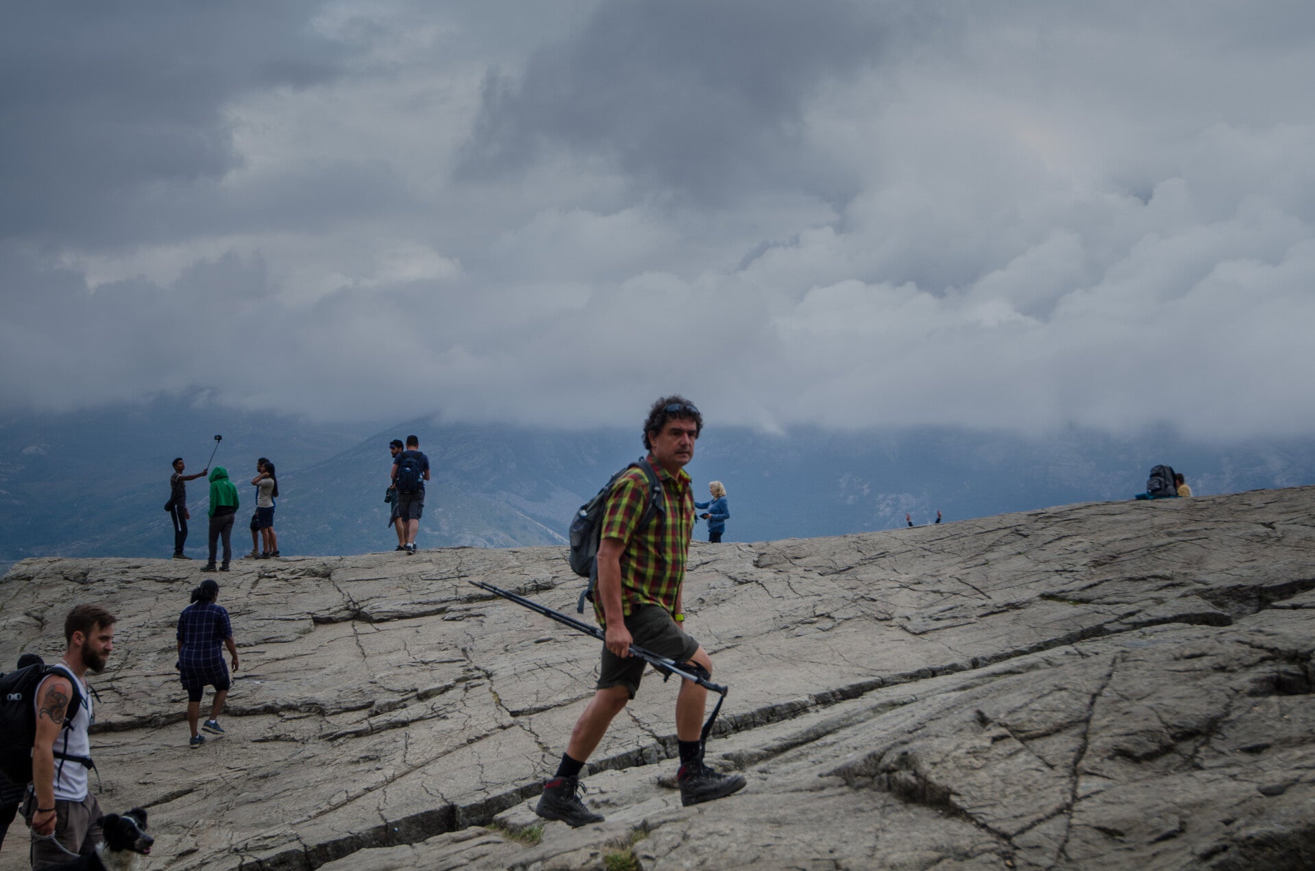 Hunderte....?, keine Ahnung, jedenfalls waren es sehr viele Menschen. Allerdings war das nicht alles. Sie kamen mit schlechtem oder auch gar keinem Schuhwerk. Mit Babys, eine Frau mit Orthese. verschleiert ......... Es war schon manchmal beängstigend. Der Weg ist anstrengend aber auch toll. Und nein, wir stellen uns nicht an die Kante. Da geht es 600m in die Tiefe und meine Höhenangst lässt mich schon auf der Haushaltsleiter unwohl fühlen.