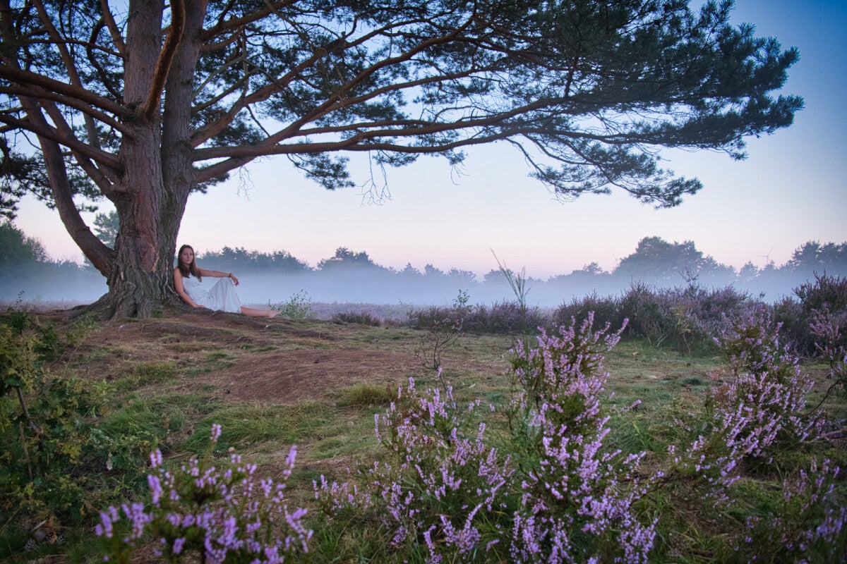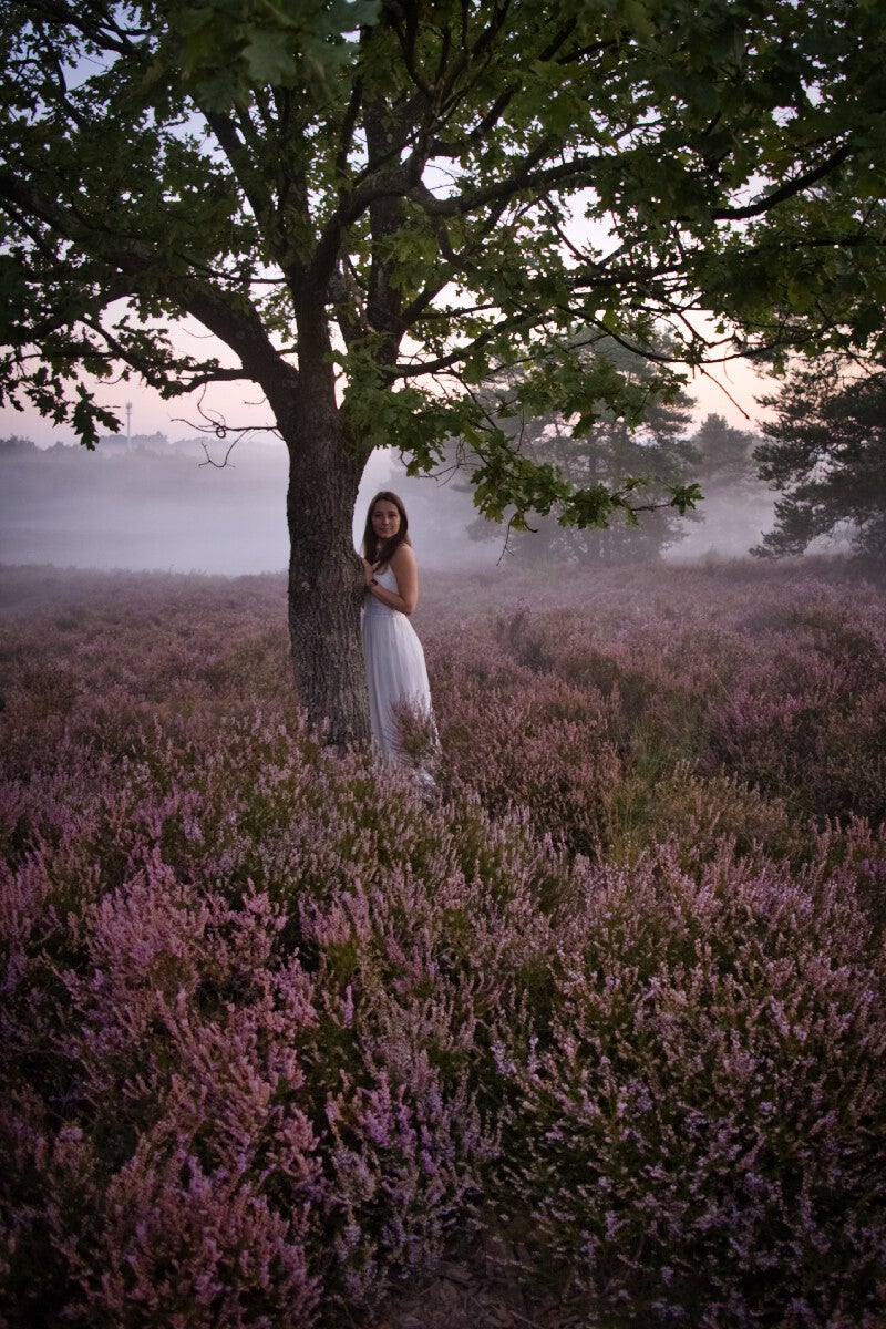 Über Tag sind hier viele Menschen in der Heidelandschaft unterwegs. Abends wird es dann ruhiger und morgens zum Sonnenaufgang trifft man hauptsächlich auf Kollegen, die mit den verschiedensten Kameraausrüstungen unterwegs sind, um den perfekten Platz und den perfekten Moment zu finden. Genauso wie wir. Heute mit unserer jüngsten Tochter Lara unterwegs, habe ich auch zuerst die Zeit genutzt um einige Landschaftsfotos zu machen. Wie erhofft, fand sich in der wunderschön blühenden Heide noch eine ordentliche Portion Bodennebel und so entstanden die ersten, schönen Aufnahmen des Tages.