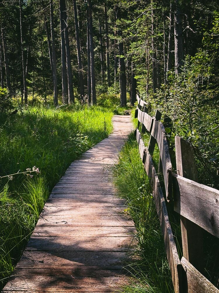 Nach etwas nächtlichem Regen, schien am Folgetag wieder die Sonne und so wanderten wir vom Campingplatz aus zum Völser Weiher, zum etwas oberhalb gelegenen Huber Weiher, den wir umrundeten und noch ein Stück den Berg hinauf Richtung Tuff-Alm. Dort hinauf zulaufen verschoben wir dann aber auf den nächsten Tag und entschieden uns mit den Fahrrädern die doch eher langweilige Schotterstraße hoch zufahren.